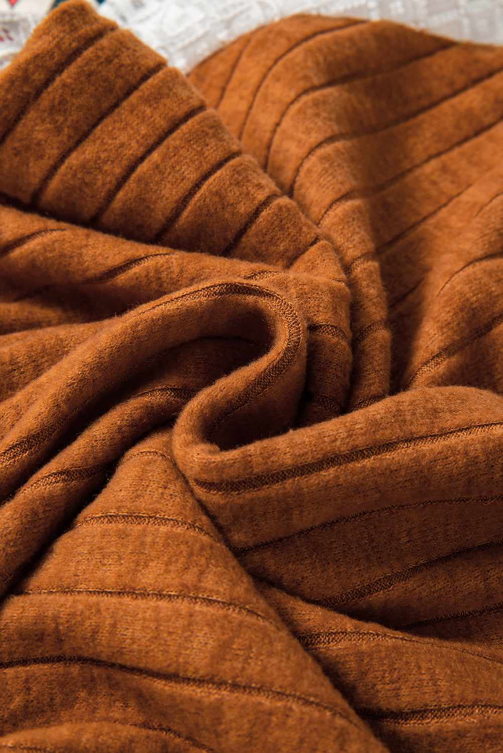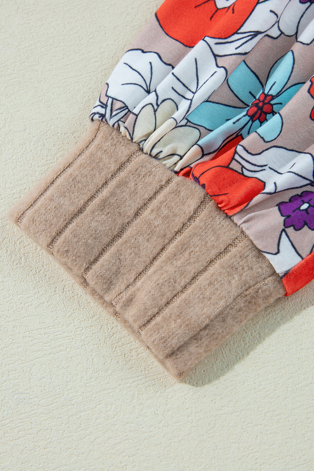 Black Floral Patchwork Long Sleeve Ribbed Blouse